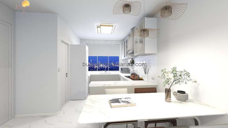 La cocina está completamente equipada y cuenta con modernos acabados, como carpintería interior lacada en blanco, suelos de gres porcelánico y una excelente iluminación natural gracias a su orientación sur. Las ventanas con sistema Climalit aseguran un óptimo aislamiento térmico, creando un ambiente confortable en cualquier estación.