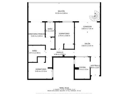 Con 109 m² construidos, la vivienda presenta un salón comedor amplio y luminoso, conectado con una terraza de 24 m² orientada al sur, ideal para disfrutar del sol todo el año.
