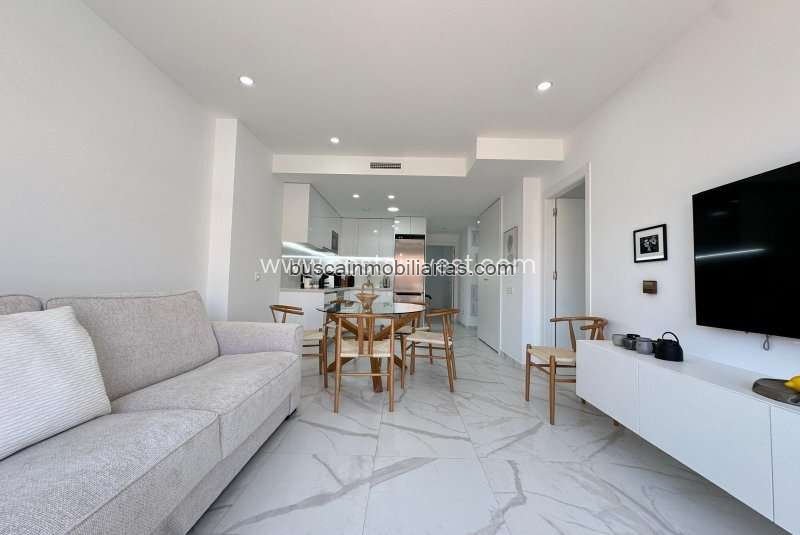 Se trata de una vivienda luminosa y refinada, una reventa de obra nueva que combina elegancia y confort en cada rincón. Dispone de 2 dormitorios, 2 baños con suelo radiante, un amplio y soleado salón con salida directa a la terraza y un espectacular solárium privado con ducha, barbacoa y vistas al mar, perfecto para disfrutar del clima mediterráneo todo el año.