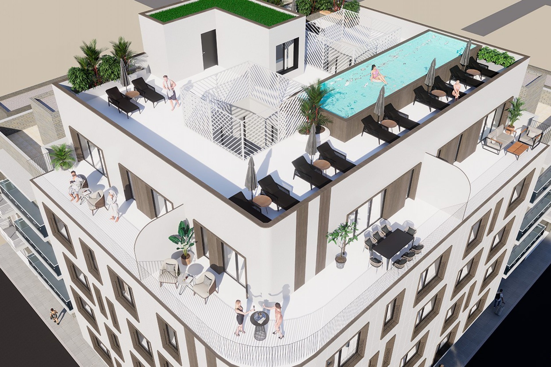 Costa Blanca Eiendom presenta un exclusivo residencial compuesto por 23 apartamentos de diseño moderno, situado en Torrevieja (Alicante), en segunda línea de playa y a tan solo 60 metros de la tranquila y familiar Playa del Acequión. Esta ubicación privilegiada le permitirá disfrutar de la brisa marina y del ambiente costero, con todos los servicios y comodidades a su alcance.