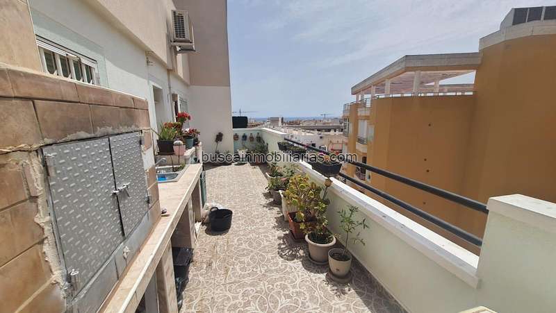 Amplio!! Ático en Torrevieja zona de 125.00 m2 de superficie con 50.00 m2 de terraza haciendo esquina y con fregador y barbacoa en ella. La vivienda dispone de 3 habitaciones dobles, y otra más en la parte final de la terraza cubierta, un baño con hidromasaje en el que te puedes sentar. Para entrar a vivir: cocina equipada, con venta en el fregadero, exterior. Carpinteria interior de madera, orientación sur, suelo de gres, carpinteria exterior de aluminio / climalit. Amueblado y bien equipado. en la parte de arriba de la vivienda hay un enorme solarium!!!