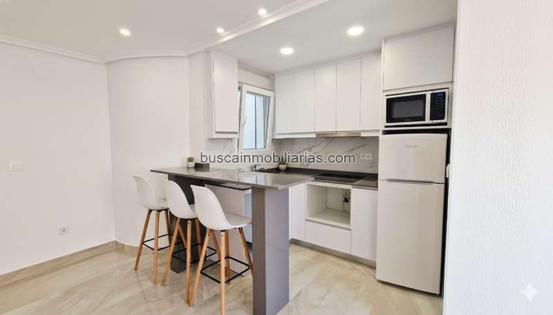 Bienvenido a tu nuevo hogar! Este espectacular ático, situado a solo 500 metros del animado paseo marítimo y puerto de Torrevieja, es una auténtica joya. Con acabados de lujo diseñados por inteligencia artificial (aunque se vende sin muebles), este espacio destaca por su luminosidad gracias a la terraza principal orientada al sur. Cuenta con dos amplios dormitorios equipados con armarios empotrados para mayor comodidad y un baño elegante que incluye detalles modernos como cristal iluminado. La cocina americana maximiza cada rincón del salón, ideal para compartir momentos memorables.