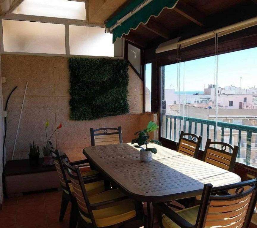 Presentamos en la Costa Blanca Alicante un precioso ático en La Mata, Torrevieja, a 300 m del mar, con vistas y una amplia terraza. Dispone de 3 habitaciones dobles, 2 baños completos y cocina americana equipada. Dispone de ascensor y aire acondicionado. Cerca de supermercado, bares y restaurantes.~