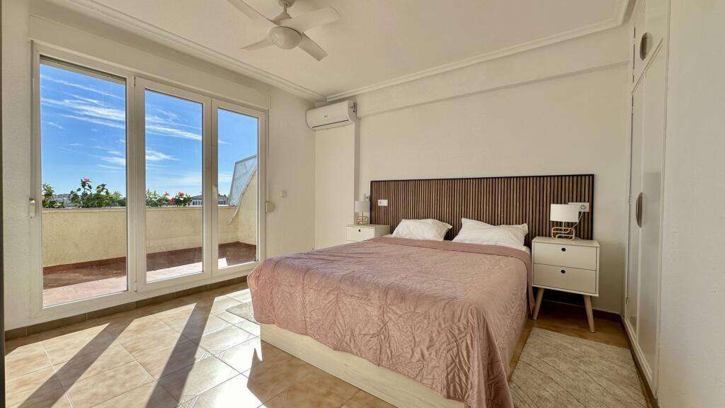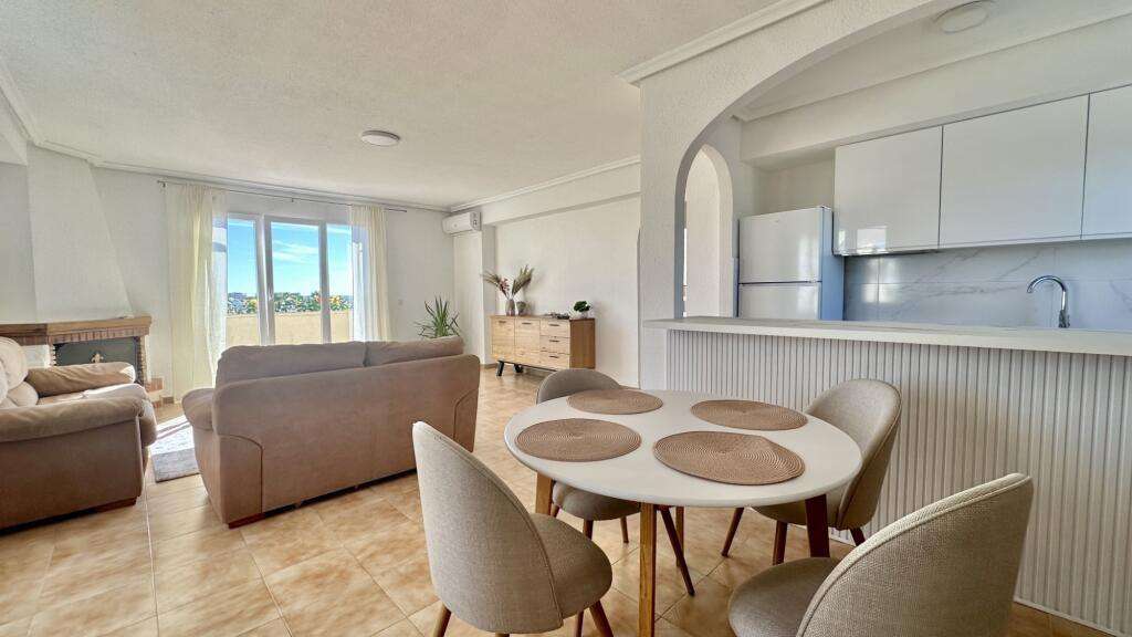 Propiedad ubicada en una excelente ubicación, con fácil acceso a todo tipo de servicios como tiendas, supermercados, restaurantes, farmacias, bares y muchos más. Además, la propiedad cuenta con una amplia terraza con vistas al mar, ubicada a solo unos pasos del apartamento. Sin duda, la compra de esta propiedad es una opción ideal para quienes desean vivir cerca de la playa y el mar sin renunciar al acceso al centro. Interior y equipamiento de la propiedad. La propiedad, con una superficie de 85 m², se encuentra en la tercera planta de un edificio con ascensor y cuenta con 2 dormitorios (uno de ellos con acceso a la terraza), 2 baños completos, una cocina abierta equipada con electrodomésticos y un amplio salón-comedor con acceso a una gran terraza. Además, cuenta con aire acondicionado. La propiedad en venta consta de: • 2 dormitorios, • 2 baños, • salón, • cocina, • terrazas. Descripción de la propiedad. Superficie de la propiedad: 85 m². Superficie total de las terrazas: 50 m². Muy cerca de todos los servicios. Mucha luz natural. Aire acondicionado. Ascensor en el edificio. Cerca del mar. Vistas al mar. Amueblado. Entorno de la propiedad. Orihuela Costa es una de las zonas costeras más pintorescas de la Costa Blanca, situada al sur de la provincia de Alicante, en la Comunidad Valenciana. Es una región en pleno desarrollo que atrae tanto a turistas como a quienes buscan una propiedad para vacaciones o residencia permanente.