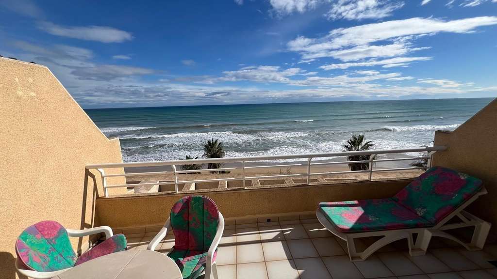 Este ático en primera línea de la playa de La Mata se presenta como un refugio íntimo y luminoso pensado para vivir frente al Mediterráneo con una sensación constante de retiro y descanso. Situado en la calle Mayor número 6, se integra en el corazón del pequeño núcleo urbano de La Mata, con su ambiente de pueblo costero, sus terrazas, sus comercios de proximidad y la vida tranquila que caracteriza esta zona al norte de Torrevieja. Desde el primer momento en que uno entra en la vivienda, la presencia del mar lo condiciona todo: la luz, los sonidos, la brisa que entra desde la terraza y la forma en la que se aprovecha cada metro para dirigir la mirada hacia el horizonte. Es un ático pensado para una o dos personas que valoren más la calidad del entorno que el tamaño, que prefieran desayunar con el rumor de las olas antes que disponer de metros sobrantes sin alma. La pieza que articula toda la vivienda es la terraza, que actúa casi como una estancia más, abierta al cielo y al mar, elevándose sobre el paseo marítimo y la arena dorada de La Mata. De día se convierte en el lugar donde transcurre la mayor parte del tiempo: una mesa ligera para desayunar al sol, un par de sillones cómodos para leer o trabajar con el portátil, unas plantas que añaden verde al azul dominante del paisaje. El Mediterráneo se abre de frente, sin obstáculos visuales, permitiendo contemplar cómo cambia el mar según la hora y la estación: calmado y brillante en las mañanas de verano, plateado en los atardeceres de invierno, más intenso y profundo cuando se levanta algo de oleaje. La altura del ático proporciona intimidad respecto al paseo y la playa, de modo que se disfruta de la vida de la costa sin renunciar a la privacidad. Al caer la tarde, la terraza cambia de carácter y se transforma en un escenario perfecto para cenas tranquilas, velas y conversaciones pausadas mientras el cielo se tiñe de tonos anaranjados y rosados. El sonido del mar llega atenuado, mezclado con el murmullo lejano de los bares y restaurantes del frente marítimo, creando una banda sonora constante pero relajante que envuelve todo el apartamento. Es un espacio que invita tanto a recibir a un par de amigos para una velada informal como a disfrutar en soledad del silencio y la brisa. En verano, esta terraza se convierte prácticamente en el verdadero salón de la casa, permitiendo vivir la mayor parte del día al aire libre, con la sensación de estar en una cubierta privada sobre el mar. El interior de la vivienda acompaña a esta relación privilegiada con el exterior. Desde la zona de estar se percibe claramente la intención de orientar todo hacia la terraza y el mar, priorizando la luminosidad y la continuidad visual. Grandes vanos acristalados permiten que la luz natural inunde la estancia principal durante la mayor parte del día, reduciendo la necesidad de iluminación artificial y creando un ambiente cálido, acogedor y siempre cambiante según la hora. La decoración ideal aquí es sencilla, limpia y funcional, con pocos elementos pero bien escogidos, dejando que la verdadera protagonista sea la vista exterior. Un sofá cómodo, una mesa auxiliar y algún mueble bajo son suficientes para estructurar el espacio sin recargarlo. La cocina, integrada visualmente en la zona de día o ubicada en un espacio contiguo de fácil acceso, se concibe al servicio de un estilo de vida práctico y relajado. No se trata de una cocina pensada para grandes banquetes, sino para el día a día de una persona o pareja que disfruta de preparar desayunos frente al mar, comidas ligeras tras una mañana de playa o cenas sencillas que luego se trasladan a la terraza. La proximidad del mar sugiere una manera de vivir donde el pescado fresco, las frutas y verduras de mercado y la gastronomía mediterránea marcan el ritmo. La cocina se convierte en un punto de paso cómodo y ordenado, sin excesos, pero preparado para responder a las necesidades cotidianas de forma eficiente.