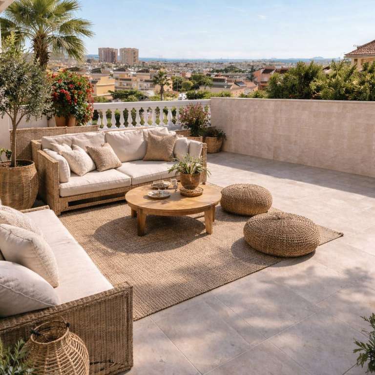 En Aguas Nuevas no aparecen muchas viviendas que combinen altura, privacidad, reforma integral y vistas abiertas al mar desde distintas plantas. Este bungalow dúplex en venta reúne precisamente esa combinación dentro de una de las zonas más consolidadas y valoradas de Torrevieja.