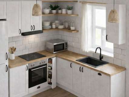 La cocina independiente facilita el uso diario manteniendo los espacios bien definidos, mientras que los dos balcones, ubicados en salón y dormitorio superior, permiten disfrutar del exterior en diferentes momentos del día.