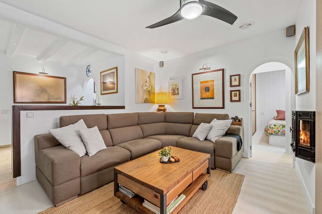 La vivienda ofrece un amplio salón-comedor en dos niveles con chimenea, 3 dormitorios, 2 baños completos y cocina independiente totalmente equipada. Su gran terraza parcialmente cubierta, con barbacoa, es perfecta para disfrutar todo el año.