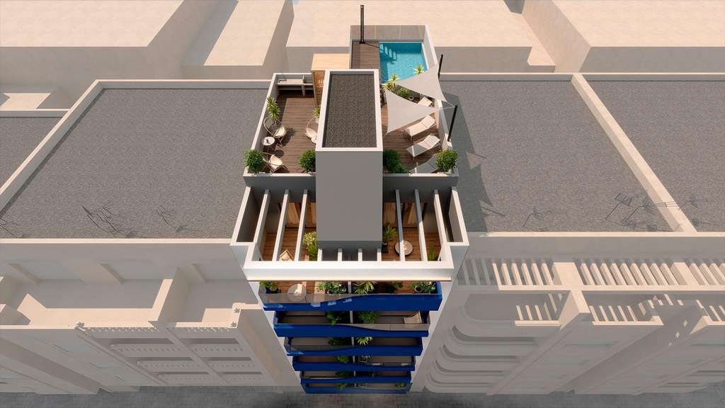 El edificio ofrece una selección de estudios, apartamentos de 1 y 2 dormitorios, y áticos con amplias terrazas privadas. Todas las viviendas cuentan con trastero incluido en la planta baja, y acceso a modernas instalaciones comunitarias que elevan el nivel de confort y estilo de vida.