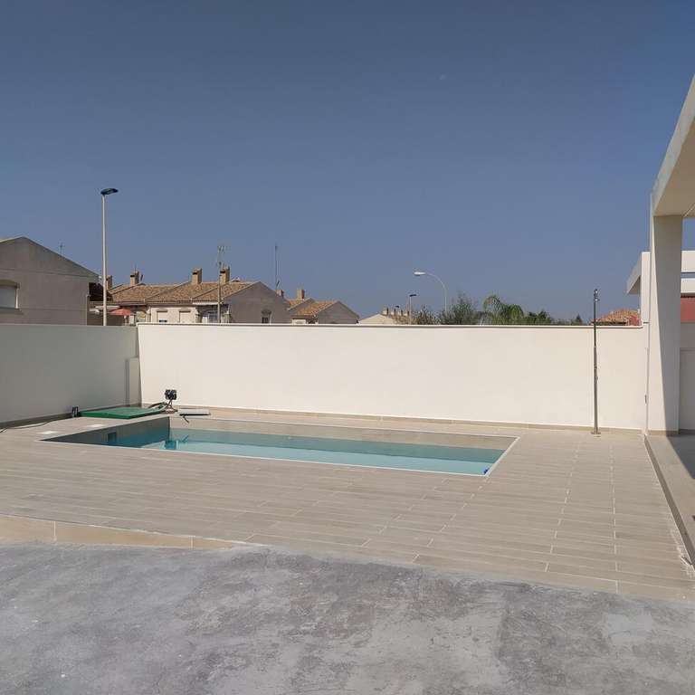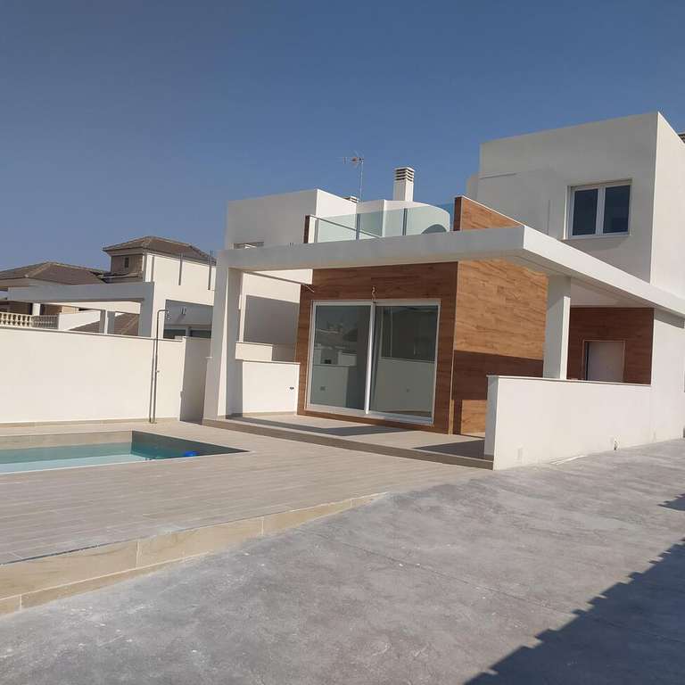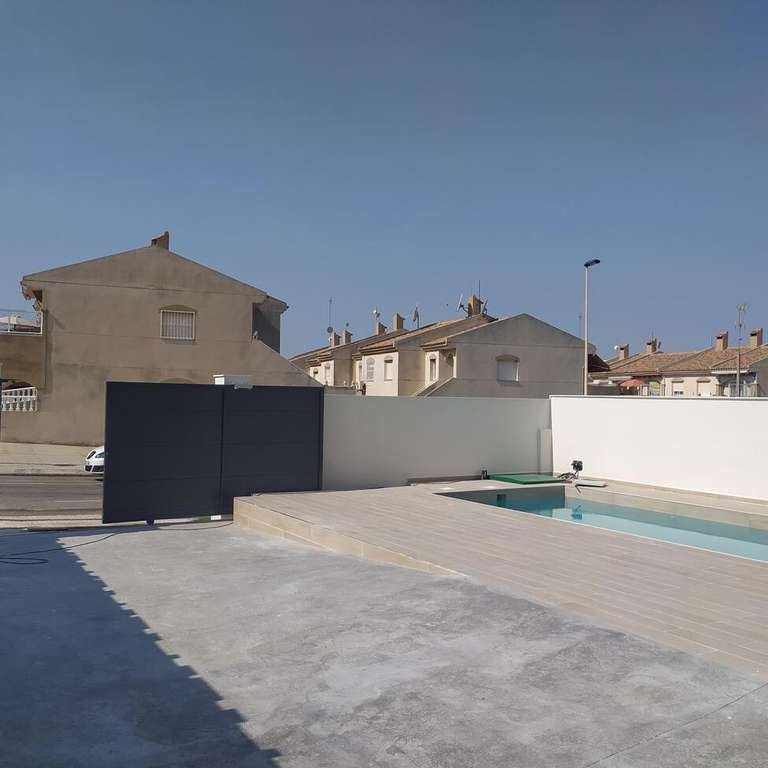 Se vende chalet independiente con 239 m² construidos, y de parcela son 407 m², tiene 3 habitaciones y 2 baños, cocina estilo francesa, lavandería, 2 solárium, amplio jardín, patio, porche y una bonita piscina privadaEn planta baja encontramos un amplio salón con vista a la piscina, la cocina estilo francés abierta al salón, 2 dormitorios, 1 baño completo con ventana, y la escalera que lleva a la 1º planta; allí tenemos 1 amplio dormitorio con su vestidor, y con baño en suite completo y una salida al solárium, y una habitación para lo que es el calentador y la lavadora, con salida a otro solárium.Puerta de seguridad, carpintería de aluminio con cristal climalitOrientación SUR en la fachada principal y NORTE en la parte atrásNO HAY COMUNIDAD DE VECINOSNO HAY IBI/SUMA DE LA VIVIENDA