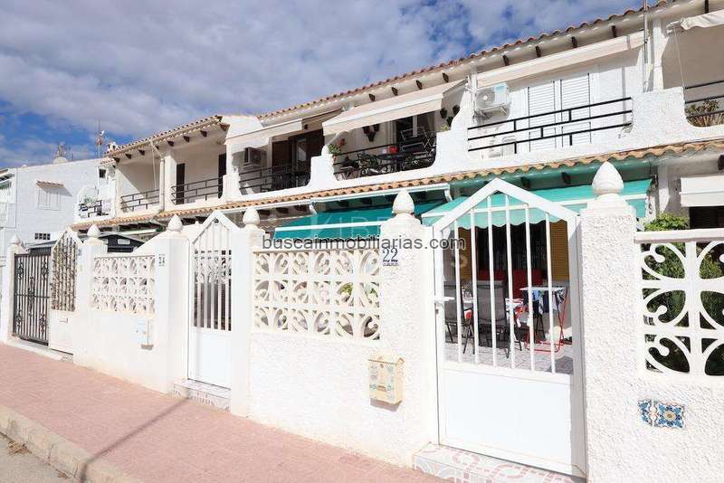 Torrevieja La Rosaleda bungalow planta alta orientación Sur y con vistas laterales al mar con amplio jardin con zona de barbacoa de 83 m2 y una vivienda de 53 m2, dispone de 2 dormitorios, baño, cocina americana salón comedor y terraza, la vivienda se vende amueblada y con aire acondicionado, a tan solo 300 mts de la playa.~