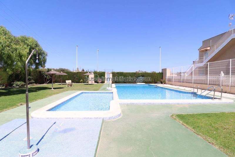 Paraje Natural II, bungalow en planta baja orientación sur de 65 m2 con 3 dormitorios, baño, cocina americana con galeria , salón comedor dispone de una terraza con jardin de unos 10 m2, el residencial cuenta con una bonita piscina ajardinada la vivienda se vende amueblada.~