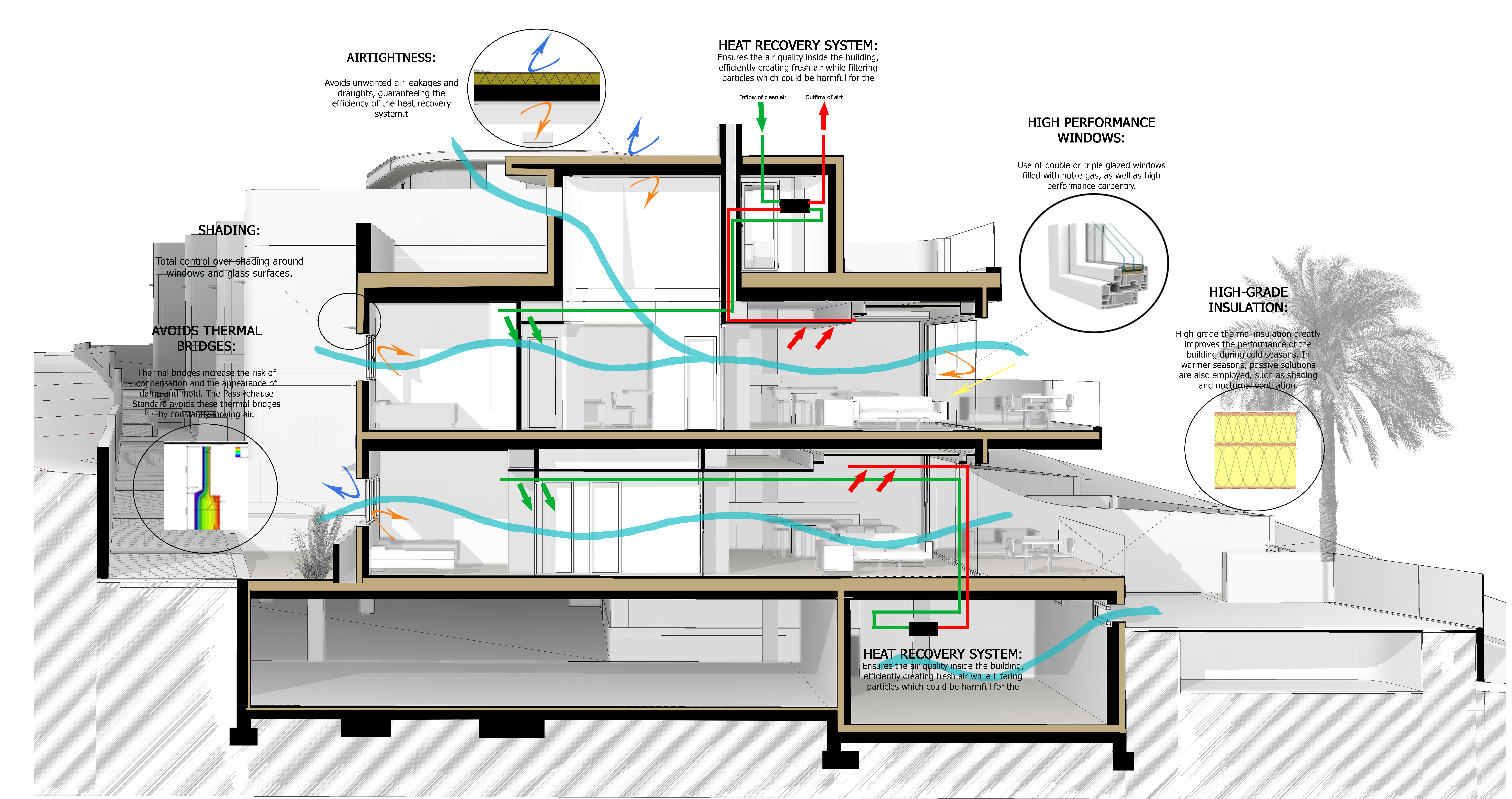 Construido de acuerdo con el prestigioso estándar Passivhaus, hemos optimizado la eficiencia energética de nuestras viviendas, creando hogares confortables y responsables con el medio ambiente. Desde ventanas y carpintería de altas prestaciones hasta el sistema de recuperación de calor de última generación, La Manguilla Sea Views renueva nuestro compromiso continuo con el diseño sostenible e innovador en nuestra región.