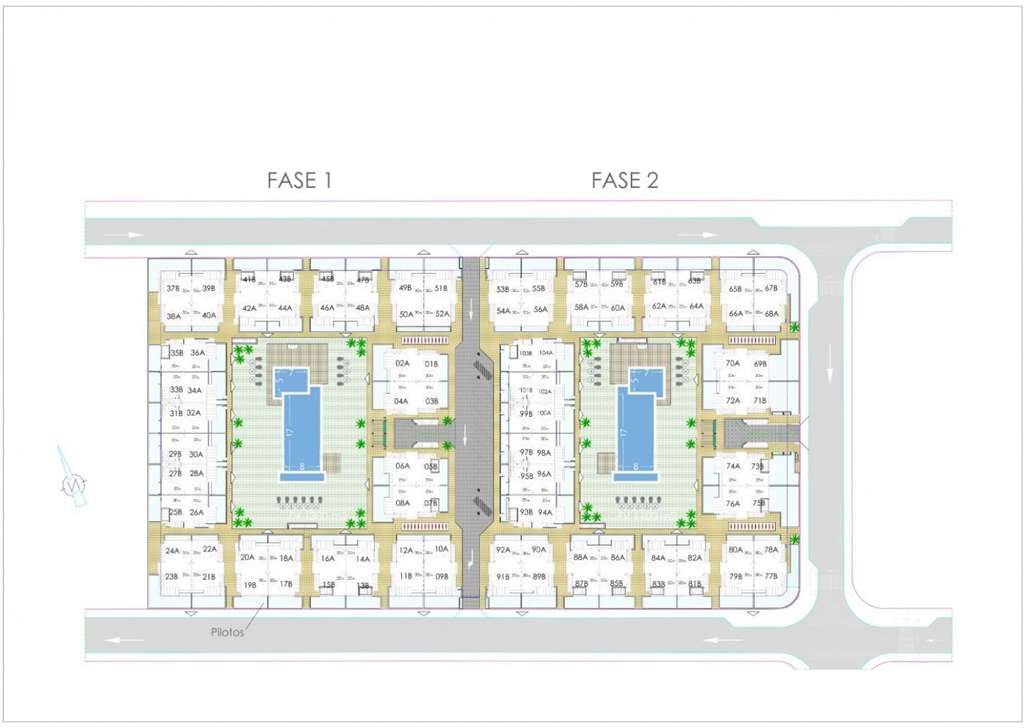 El complejo consta de 104 bungalows de 2 y 3 dormitorios, los bungalows de la última planta tienen solariums privados con vistas panorámicas a la laguna salada y los bungalows de la planta baja tienen grandes terrazas con vistas a la zona verde.