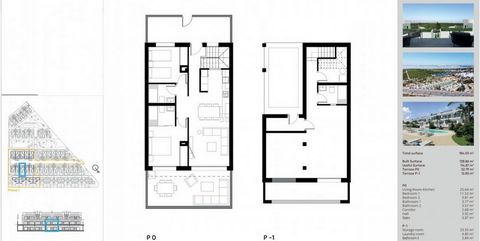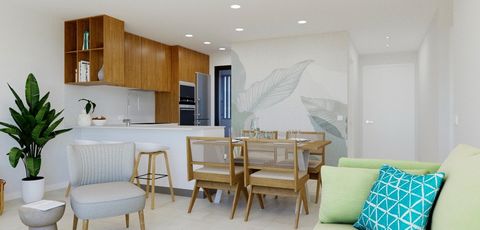Los bungalows de planta alta disponen de 2 dormitorios, 2 baños, cocina americana con amplio salón, armarios empotrados, terraza, solarium privado y plaza de aparcamiento subterráneo.