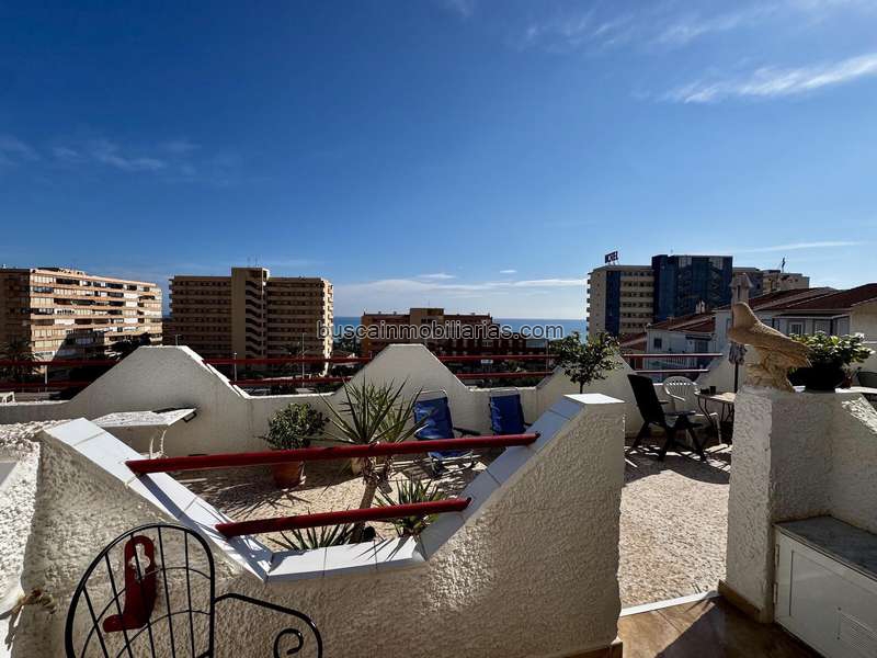 En la planta baja hay una terraza con sol de mañana y vistas al mar. La planta inferior ofrece un espacio diáfano, luminoso y bien distribuido con salón y cocina, donde los grandes ventanales hacia la terraza crean un ambiente agradable y espacioso. Hay espacio para un comedor, sofá y mueble de entrada, además de un práctico almacenamiento bajo la escalera.