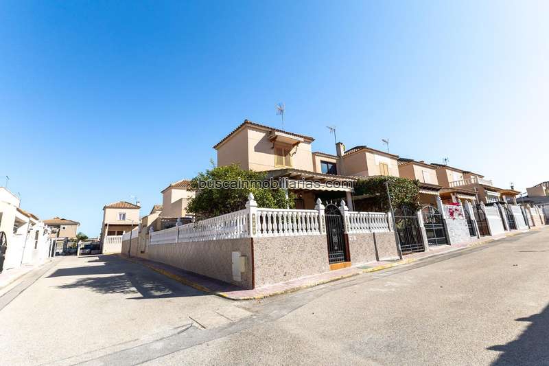 2. Casa/Chalet → Bungalow en Torrevieja zona Los Balcones - Los Altos del Edén, 66 m. de superficie, 24 m2 de terraza (SOLARIUM), 2 m. de la playa (KM), 3 habitaciones, 2 baños, propiedad en Buen estado, cocina equipada, orientación noreste, suelo de gres, carpinteria exterior de madera.