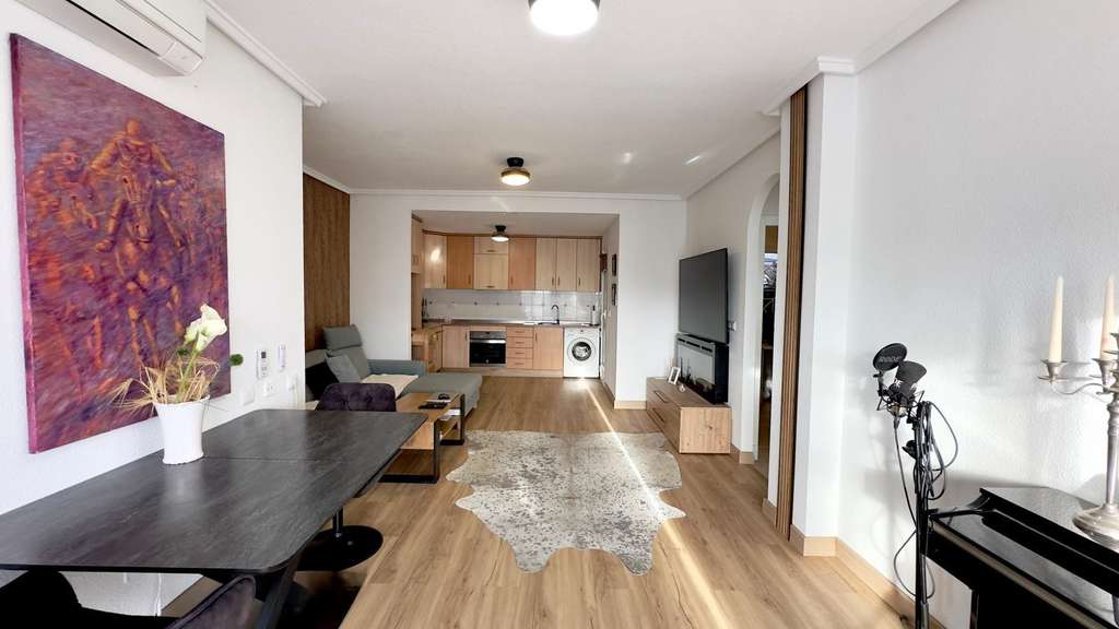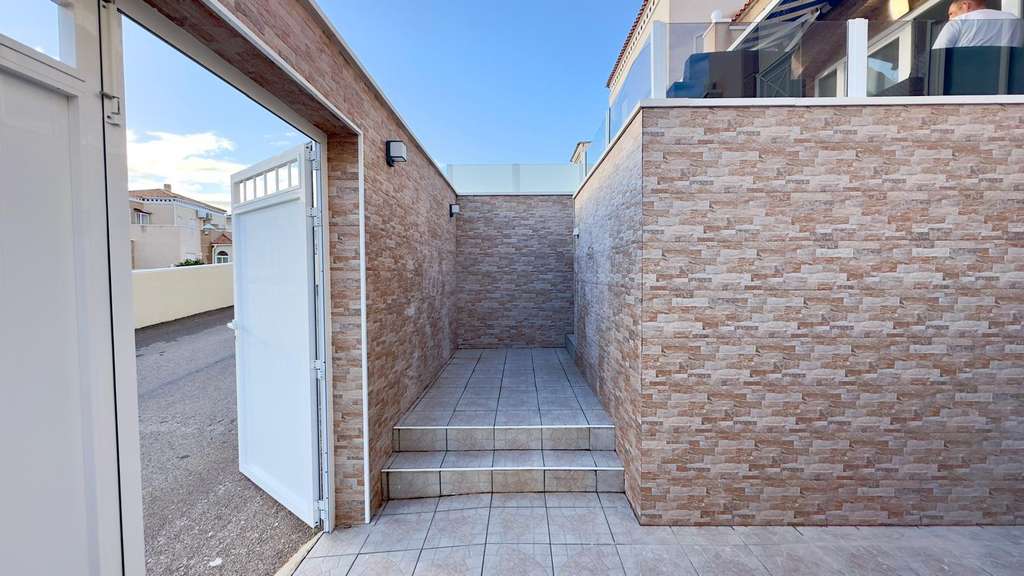 BUNGALOW BAJO TOTALMENTE REFORMADO EN CABO CERVERA – CONFORT, EXTERIOR Y ZONA PRIVILEGIADA Le presentamos esta excelente oportunidad de adquirir un bungalow en planta baja completamente reformado, ubicado en la prestigiosa y tranquila zona de Cabo Cervera, una de las áreas residenciales más valoradas por su proximidad al mar, su entorno cuidado y su ambiente relajado durante todo el año. Una vivienda ideal tanto como residencia habitual, segunda vivienda vacacional o inversión segura en la costa. La propiedad destaca por su cómoda distribución en una sola planta, lo que garantiza accesibilidad, funcionalidad y confort. Dispone de dos dormitorios bien proporcionados, diseñados para ofrecer espacios acogedores y prácticos, ideales tanto para el descanso como para el uso diario. La reforma realizada aporta una estética actual y un ambiente moderno, listo para entrar a vivir sin necesidad de realizar mejoras adicionales. El cuarto de baño ha sido renovado y cuenta con un moderno plato de ducha, aportando comodidad, seguridad y un diseño actual que responde a las necesidades actuales. Los acabados elegidos refuerzan la sensación de limpieza, amplitud y funcionalidad. La vivienda cuenta además con una galería, un espacio muy valorado que puede utilizarse como zona de lavandería, almacenamiento adicional o apoyo a la vida diaria, mejorando notablemente la organización del hogar. Uno de los grandes atractivos de este bungalow es su terraza exterior privada, perfecta para disfrutar del clima mediterráneo durante todo el año. Este espacio se convierte en un lugar ideal para desayunos al aire libre, reuniones familiares, momentos de relax o incluso para crear una agradable zona chill-out. Al tratarse de una vivienda en planta baja, el acceso al exterior es cómodo y directo, aportando una sensación de independencia similar a la de una vivienda unifamiliar. La propiedad incluye garaje cerrado, un valor añadido muy importante en la zona, que garantiza comodidad, seguridad y protección para su vehículo. Además, el residencial dispone de zonas de parking, facilitando el estacionamiento tanto para residentes como para visitantes. El complejo residencial ofrece una piscina comunitaria, perfectamente mantenida, ideal para refrescarse en los meses de verano, disfrutar en familia o aumentar el atractivo de la vivienda en caso de destinarla al alquiler vacacional o de temporada. La orientación sur de la vivienda asegura una excelente entrada de luz natural durante todo el día, creando espacios cálidos, luminosos y agradables en cualquier época del año. Esta orientación es especialmente valorada por su eficiencia energética y por mejorar la calidad de vida dentro del hogar. En cuanto a la ubicación, el bungalow se encuentra a tan solo 850 metros de la playa, lo que permite disfrutar del mar con un agradable paseo, sin renunciar a la tranquilidad de una zona residencial consolidada. Cabo Cervera es conocida por su entorno cuidado, su cercanía a calas y playas, y su buena conexión con todos los servicios necesarios: supermercados, transporte público, restaurantes y zonas de ocio. Esta vivienda representa una excelente oportunidad de inversión, ya que reúne características altamente demandadas: reforma integral, espacios exteriores, garaje, piscina comunitaria y una ubicación privilegiada cerca del mar. Todo ello garantiza una alta demanda tanto para alquiler vacacional como de larga duración, así como una buena proyección de revalorización. En resumen, se trata de un bungalow reformado, luminoso y funcional, con terraza, garaje incluido, piscina comunitaria y orientación sur, ubicado en una de las zonas más atractivas de la costa. Una propiedad pensada para disfrutar, vivir o invertir con total tranquilidad. No deje pasar esta oportunidad. Contacte con nosotros para ampliar información o concertar una visita y descubra todo el potencial de esta magnífica vivienda en Cabo Cervera.