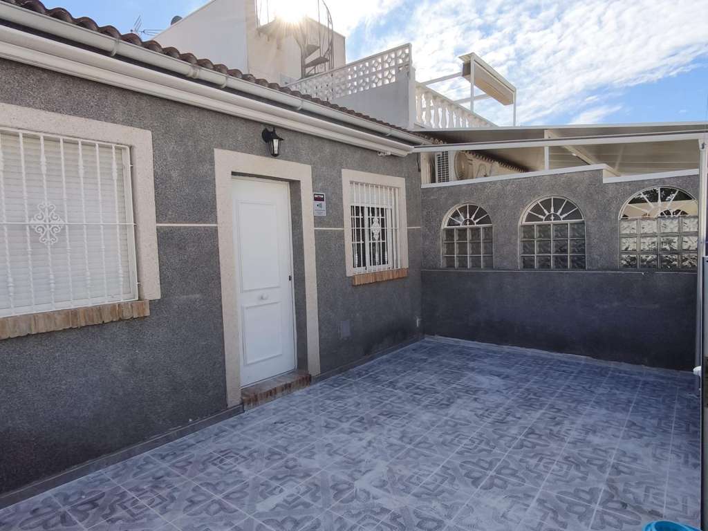 Bungalow de planta baja con terraza delantera totalmente solada de 25 m2 y toldo en toda su extensión. Totalmente reformado y recién pintado, para entrar a vivir. Cuenta con salón-comedor y cocina integrada, dos dormitorios y un baño completo. La cocina cuenta con mobiliario nuevo a estrenar (muebles altos y bajos, encimera de mármol negro, campana extractora de acero inoxidable y termo nuevo eléctrico). Puertas de paso nuevas lacadas en blanco. Se accede al bungalow mediante una tranquila calle peatonal. Rodeado de tranquilidad, espacios verdes y senderos. El Chaparral- San Luis. Zona residencial consolidada con amplia gama de servicios, supermercados, restaurantes, bares, farmacia, zonas de ocio. Próximo a la reserva natural de La Mata, repleta de senderos y amplios espacios verdes. A 2 kilómetros de la playa.