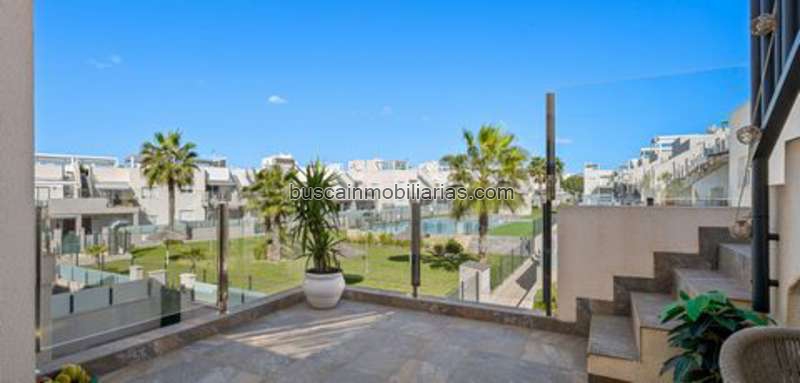 This elegant upper bungalow from 2019 offers a modern and comfortable base in one of Torrevieja's most sought-after areas, namely Aguas Nuevas. The home has 78 m² with two good bedrooms and two stylish bathrooms, one of which is ensuite. There are large built-in wardrobes in both bedrooms, so there is plenty of space for storage.