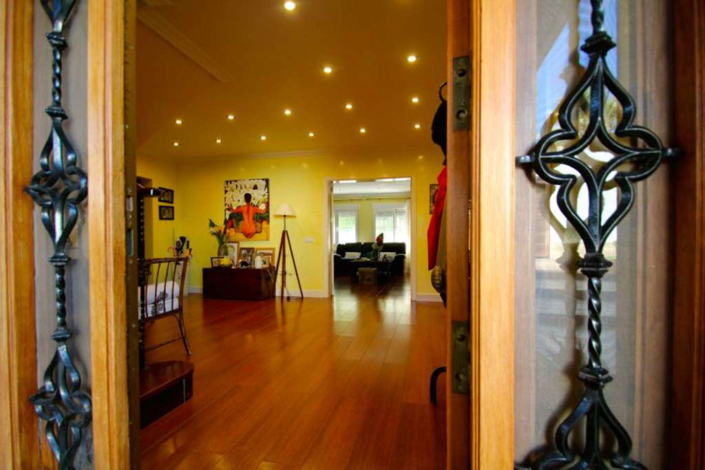 Al entrar a la casa impresiona el precioso recibidor del cual se llega a todas las estancias como el hermoso salón, el comedor y una acogedora terraza acristalada con vistas al jardín detrás. En la planta baja se encuentra también la cocina independiente con zona de comedor y acceso directo al jardín y al porche cubierto. Tres de los dormitorios y uno de los baños están en esta planta.