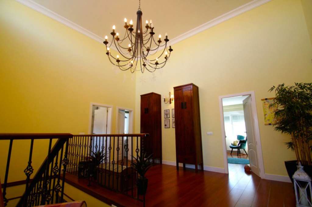 Por una impresionante escalera en el hall se sube a la planta de arriba donde se ubican los otros cuatro dormitorios y el segundo baño.