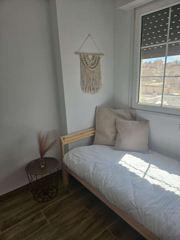 ¡Esta casa adosada renovada ya está disponible! Está convenientemente ubicada cerca de los servicios y a poca distancia de la playa de La Mata. La casa fluye sin esfuerzo y tiene un salón/comedor y cocina de planta abierta. Hay un aseo de invitados muy conveniente en la planta baja. Las escaleras conducen a 2 dormitorios y un moderno baño con ducha. El dormitorio principal tiene un balcón de buen tamaño con vistas a la piscina y los jardines y al mar. Desde el dormitorio principal, las escaleras conducen a un dormitorio adicional. La propiedad se encuentra dentro de una comunidad cerrada con estacionamiento y tiene un jardín delantero y trasero, lo que garantiza sol o sombra en cualquier momento del día. El jardín delantero tiene una cocina/barbacoa al aire libre y un armario donde se encuentra la lavadora. El jardín trasero tiene una puerta que da acceso directo a la piscina. LOS EXTRAS INCLUYEN: Todos los muebles y electrodomésticos Mosquiteras Aire acondicionado Esta es una propiedad que debe ver, y es perfecta como residencia de tiempo completo o casa de vacaciones. Recomendamos encarecidamente una visita.