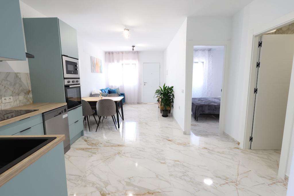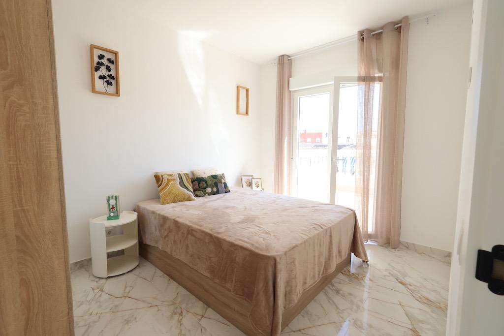 Adosado Reformado en El Chaparral con Vivienda Independiente en Planta Alta. . Presentamos esta fantástica vivienda adosada totalmente reformada y equipada, ubicada en la tranquila zona de El Chaparral, ideal tanto como residencia habitual como inversión para alquiler vacacional o de larga duración.. . La propiedad cuenta con 88 m² construidos, distribuidos en dos plantas con accesos independientes:. . - Planta baja: dispone de 2 dormitorios, 1 baño completo, cocina abierta al salón con zona de lavandería, y un amplio salón-comedor muy luminoso.. - Planta alta: con entrada independiente, ofrece 1 dormitorio, 1 baño, cocina, salón y una gran terraza de 14,5 m², perfecta para disfrutar del sol o recibir invitados con total privacidad.. . Además, la propiedad incluye una zona de aparcamiento privada y un jardín enlosado de aproximadamente 54 m², ideal para disfrutar al aire libre sin mantenimiento.. . Se encuentra muy cerca del nuevo parque y del parque acuático, lo que añade un atractivo extra tanto para vivir como para alquilar.. . La vivienda se vende completamente amueblada, con electrodomésticos incluidos y preinstalación de aire acondicionado..