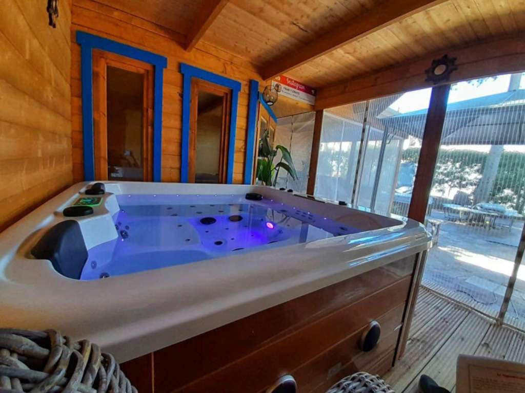 Jacuzzi para cinco personas, equipado con iluminación, sonido y aromaterapia, ofreciendo un oasis de bienestar en tu propio hogar.