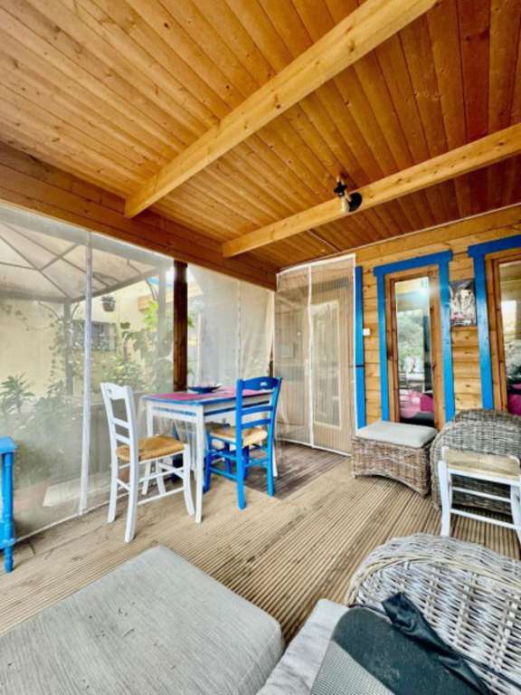 Porche de madera y una terraza perfecta para relajarte o compartir momentos con familia y amigos.