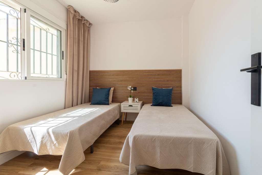 ¡Bienvenido a tu nuevo hogar en el soleado residencial Los Naranjos II! Este adosado recién reformado y completamente amueblado en Los Altos te ofrece la combinación perfecta de comodidad, estilo y ubicación privilegiada. Imagina disfrutar de mañanas relajadas en tu jardín privado o en el acogedor porche, antes de entrar en un amplio salón comedor ideal para el entretenimiento. La moderna cocina americana, con acceso a una práctica galería, es perfecta para preparar tus comidas favoritas. ~En la planta baja, encontrarás un dormitorio y un baño completo, ideal para invitados o para uso como despacho. Subiendo las escaleras, te esperan otros dos dormitorios espaciosos y otro baño completo, ofreciendo privacidad y confort. Un práctico trastero te ayudará a mantener todo organizado. ~El residencial Los Naranjos II te ofrece una fantástica piscina comunitaria para refrescarte en los días calurosos y un aparcamiento dentro del recinto, garantizando tranquilidad y comodidad. Además, la ubicación es inmejorable, al lado de todos los servicios esenciales: supermercados, tiendas, restaurantes... ¡y a poca distancia de la playa! Con aire acondicionado para tu confort durante todo el año, esta propiedad es una excelente oportunidad para disfrutar de la vida mediterránea. No pierdas la oportunidad de vivir en este oasis de tranquilidad y comodidad. ¡Contáctanos hoy mismo para una visita!