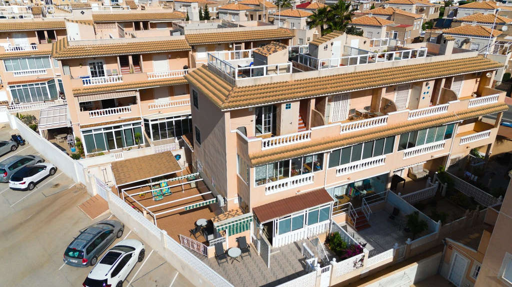 ¡Miren esta hermosa casa que acabamos de estrenar! Está orientada al sur y se encuentra en una pequeña colina a las afueras del centro de Torrevieja. La casa cuenta con 3 dormitorios y 1 baño y medio, 3 amplios balcones y una gran terraza privada en la azotea. Ofrece fantásticas vistas al mar Mediterráneo, La Manga, el lago Salado y la ciudad, incluyendo el amanecer y el atardecer. La casa se encuentra en una urbanización cerrada y bien gestionada con muchos residentes escandinavos. La urbanización cuenta con una amplia y hermosa zona de piscina y aparcamiento para los propietarios dentro del recinto cerrado. La casa ha tenido los mismos propietarios noruegos desde que se estrenó y está en perfecto estado. Se vende completamente amueblada y equipada, así que solo necesita traer su maleta. Si desea renovarla con un estilo más moderno, con gusto le pondremos en contacto con profesionales cualificados. Aquí vivirá en una zona céntrica, con buenas conexiones de autobús, y a poca distancia a pie de la playa, el paseo marítimo, el centro, varios supermercados, restaurantes, cafeterías, parques, farmacias, etc. A poca distancia en coche encontrará varios campos de golf de renombre, como La Marquesa, La Finca, Las Ramblas y Villamartín. El aeropuerto de Alicante está a unos 40 minutos en coche. Torrevieja es una zona popular para quienes desean disfrutar del fantástico clima de la Costa Blanca. Aquí encontrará de todo: desde excelentes instalaciones deportivas, tiendas, el popular mercado de los viernes que se celebra cada semana y muchos eventos interesantes durante todo el año. ¡Contáctenos para concertar una visita! También organizamos visitas de 3 a 5 días para mostrarle viviendas que se ajusten a sus preferencias y presupuesto. Si no puede asistir a una visita, con gusto la realizaremos virtualmente.