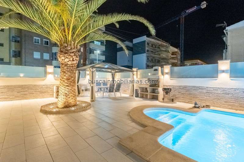 Adosado a solo 400m de mar, con la parcela grande, la piscina climatizada, placas solares y mucho mas.... Se trata de dos casas unidas pero independientes, ofreciendo una amplia distribución con un total de 4 dormitorios, dos cocinas y 3 cuartos de baño. La amplitud es evidente en cada rincón, con espacios luminosos y confortables. Además, cuenta con placas solares para un consumo más sostenible, así como con una chimenea convencional y otra eléctrica para disfrutar de las noches acogedoras. En el exterior, encontrarás una magnífica piscina privada climatizada, una zona de barbacoa perfecta para reuniones familiares y amigos, así como una plaza de aparcamiento. Todo el jardín y la terraza están equipados con iluminación nocturna, brindando un ambiente mágico en las noches estrelladas. ¡No pierdas la oportunidad de vivir en esta maravillosa propiedad en Punta Prima!!!