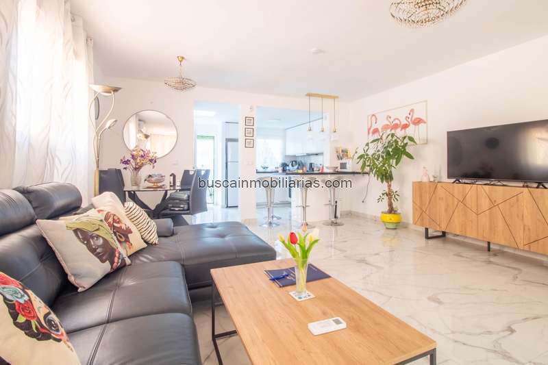 En la planta baja encontramos una amplia terraza delantera con sol de mañana y mediodía, recibidor, salón-comedor con cocina americana, baño completo, dormitorio, galería o patio lavadero, y un garaje cerrado. Esta planta ha sido reformada recientemente, ofreciendo un estilo moderno y funcional.