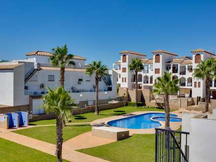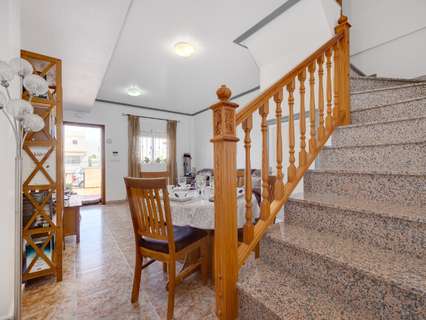 Adosado en venta de 2 plantas con 2 dormitorios, 2 baños, salón-comedor, cocina independiente con salida al patio, terraza, solarium privado.La casa está completamente amueblada . Se encuentra en una urbanización ¨Cinuelica R 8¨ cerrada con piscina y zonas verdes, cerca de todos los servicios y a distancia andando hasta la playa de Punta Prima. A unos 5-10 minutos en coche están los campos de golf de Villamartin y Las Ramblas, centro comercial Zenia Boulevard y famosas salinas de Torrevieja.