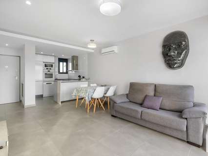 Te presentamos este magnífico bungalow en planta primera, ubicado en el prestigioso residencial Oasis Beach 7, en la zona de Punta Prima, Torrevieja (Alicante). Una vivienda ideal tanto para disfrutar todo el año como para obtener una excelente rentabilidad vacacional, ya que dispone de licencia turística vigente.~~La propiedad cuenta con 2 dormitorios y 2 baños completos, uno de ellos en suite, distribuidos de manera funcional y luminosa gracias a su orientación oeste. El amplio salón se abre a una terraza con preciosas vistas al cuidado entorno del residencial, que destaca por sus amplias zonas verdes y su espectacular piscina comunitaria.~~En la parte superior, disfrutarás de un solárium privado de 58 m², perfecto para tomar el sol, relajarte o compartir momentos inolvidables con familia y amigos.~~Se vende totalmente amueblado y equipado, listo para entrar a vivir. Además, incluye una plaza de aparcamiento subterránea.~~La ubicación es inmejorable: a solo 1.500 metros de la playa, y a 5 minutos en coche del centro comercial Zenia Boulevard, con una amplia oferta de ocio, restauración y tiendas.~~Si buscas confort, estilo y una inversión segura en la Costa Blanca, esta vivienda lo tiene todo.