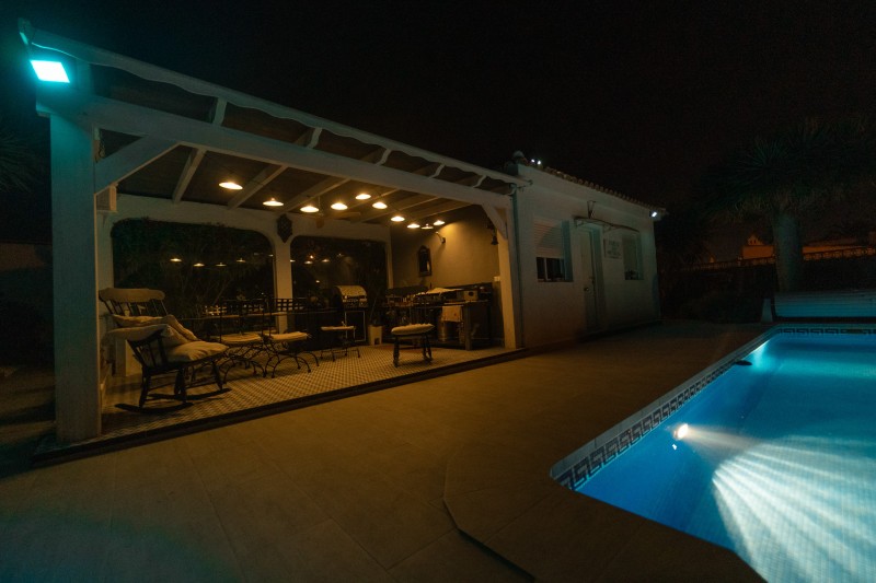 La propiedad se destaca por su piscina privada de 31 m2, ideal para disfrutar del clima mediterráneo. Dispone de un garaje privado y está equipada con todas las amenidades modernas: calefacción, doble cristal, alarma, y mucho más. La cocina está completamente amueblada con electrodomésticos, incluyendo frigorífico, horno, lavadora y microondas.