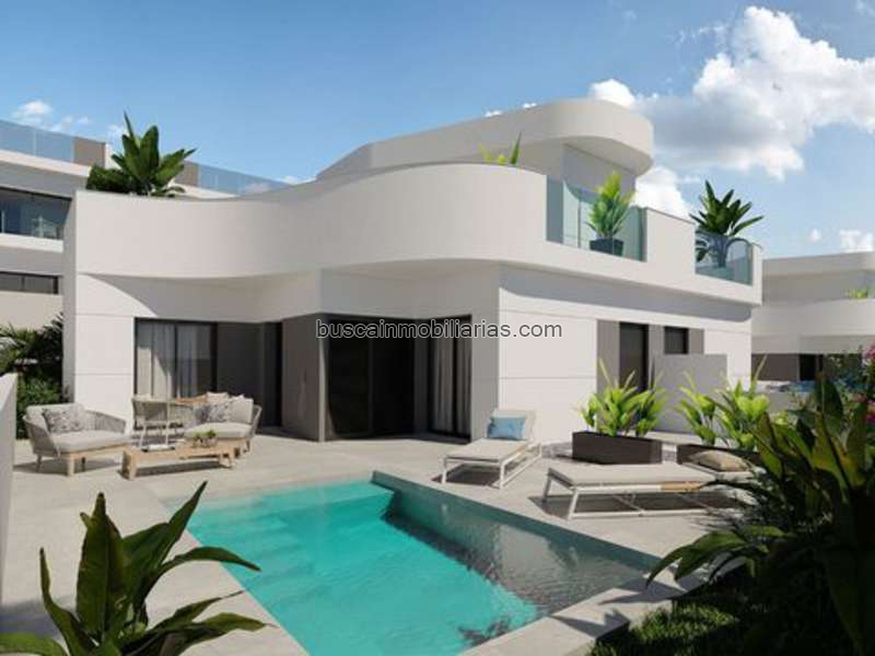 Descripción del objeto: ¡¡TODAS LAS CASAS AHORA CON SOTANO!! Pareados que constan de una superficie construida de unas 142 m² (incluyendo terrazas) con 3 dormitorios, 2 baños (1 en-suite), 1 salón / comedor con cocina y 1 solario (a unos 57 m²). También es posible un sótano como opción. Las parcelas tienen un tamaño de 224 m² - 228 m². En este complejo privado se construyen Bungalows con 2 dormitorios, planta alta con solárium y planta baja con amplias terrazas y sótano, y chalets pareados con 3 dormitorios, solárium y piscina privada. Las villas pareadas destacan a primera vista por el equilibrio perfecto que transmite la combinación de unas líneas rectas, puras y minimalistas, junto con otras partes más onduladas y orgánicas, que aportan al conjunto un aspecto elegante y refinado que no pasará desapercibido para nadie. En su terraza podrás disfrutar de tus veladas en familia, tomando el sol, o refrescándote en la piscina. Si te decides finalmente por un dúplex, deberás elegir entre tener vistas a la laguna, o al sol del medio día, y entre planta alta o baja. En cualquiera de los casos, dispondrás de una fantástica vivienda bañada de luz natural, con un espacioso salón que se funde con la cocina. Si tu elección es la planta alta, podrás disfrutar de las vistas o tomando el sol en su amplio solárium. Y si te decantas por la planta baja, a la terraza deberás sumar un sótano privativo que podrás aprovechar como vivienda de invitados, como sala de juegos para los niños, o simplemente como ese espacio especial en el que disfrutar con familia y amigos. Sea cual sea tu elección, disfrutarás de la experiencia de vivir en un exclusivo residencial lleno de grandes zonas comunes de esparcimiento natural, frondosos jardines, zona bio-saludable, juegos infantiles, y por supuesto, 2 grandes piscinas comunitarias, una para adultos y otra para niños. Equipamiento adicional: Las viviendas constan - entre otras cosas - de carpintería exterior en aluminio con doble acristalamiento y persianas motorizadas, puertas principales de entrada acorazadas, armarios empotrados, cocinas amuebladas con electrodomésticos, bomba de calor mural para agua caliente sanitaria de Aerotermia y mamparas y muebles en baños. Además hay una amplia zona verde con piscinas comunitarias y los chalets pareados tienen piscina privada. Ubicación de casa/solar: Este residencial cuenta con una situación inmejorable, rodeado de tranquilidad, y lugares paradisiacos, nuestros clientes disfrutarán este entorno privilegiado rodeado de la Laguna Rosa Salada, las mejores playas de nuestro mar Mediterráneo, a 5 minutos de seis campos de golf, y entre los dos centros comerciales más importantes de la zona, contando con que uno de ellos es reconocido en toda Europa. Desde sus balcones podrán disfrutar de las maravillosas vistas que se ofrecen a la Laguna. El aeropuerto de Alicante está alcanzable en poco tiempo. Otros: Calificación energética está pendiente.