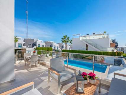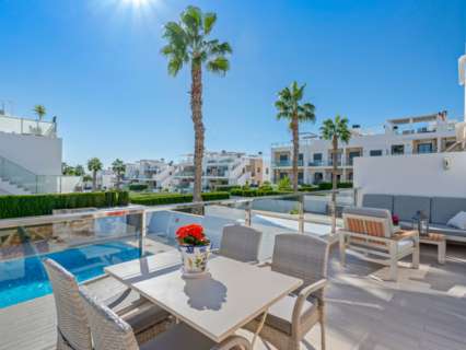 Se vende adosado con piscina privada en Punta Prima Se vende casa adosada con 3 amplias habitaciones y 2 baños modernos y sótano-ideal como gimnasio, bodega, sala de cine, la vivienda se encuentra en excelente estado y lista para entrar a vivir.La casa tiene una fantástica zona con piscina privada, un precioso jardín y una amplia pérgola que enmarca una estupenda cocina exterior con fregadero y nevera, ideal para disfrutar verano.Se vende con dos plazas de aparcamiento en el garaje subterráneo y un trastero de aproximadamente 6,6 m². La urbanización ofrece a sus residentes hermosas zonas verdes, una amplia piscina comunitaria y una ubicación muy cerca de todo. Ubicado en Torrevieja - Punta Prima, una zona vibrante durante todo el año, con una amplia variedad de servicios a su alcance: centros comerciales, restaurantes, bares, farmacias, hospitales y colegios, todo a un paso del mar. Este apartamento es perfecto tanto para vivir como para disfrutar de unas vacaciones inolvidables.