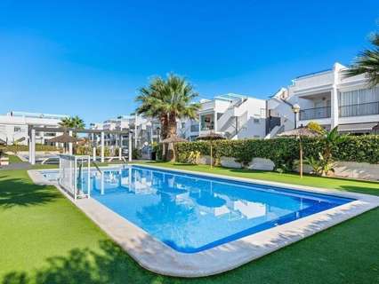 A solo 30 minutos del aeropuerto de Alicante y a 1 km de las playa. Un baño, dos dormitorios, salón, cocina, una terraza orientada al sur, una terraza trasera aislada donde el sol no da la mayor parte del día y un solárium en la azotea con paneles solares para el agua caliente. Desde el solárium se puede contemplar el lago rosa de las Salinas de Torrevieja. La residencia está completamente vallada y cuenta con dos piscinas bien cuidadas y un parque infantil. ~
