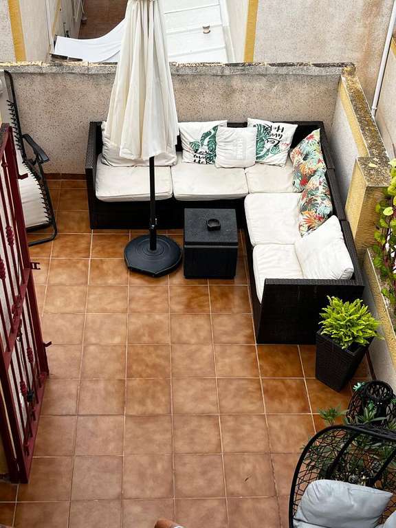 Orihuela Costa | Urbanización Cerrada | Piscina Comunitaria | Amueblado 3 Dormitorios | 2 Baños | Aprox. 107 m² Útiles Interiores | 65 m² de Espacio Exterior Privado Descripción de la ViviendaPresentamos esta luminosa vivienda tipo tríplex, ubicada en una de las zonas más tranquilas de Orihuela Costa, dentro de la conocida urbanización Amapolas VI. Distribuida en tres plantas, la propiedad cuenta con tres terrazas privadas, incluyendo un solárium en la azotea ideal para disfrutar del clima mediterráneo.La vivienda se vende totalmente amueblada y decorada con gusto, incluyendo mejoras recientes en mobiliario y accesorios, lista para entrar a vivir o comenzar a rentabilizarla desde el primer día. Superficie RealSi bien la documentación registral original refleja una superficie inferior, tras una medición completa se ha verificado una superficie útil interior de aproximadamente 107 m², además de 65 m² de terrazas privadas repartidas en las tres plantas. Esto convierte a esta vivienda en una de las más espaciosas y aprovechables de su categoría. Características PrincipalesPlanta Baja: Salón-comedor con acceso directo a la terraza delantera, cocina independiente, baño completoPrimera Planta: Dos dormitorios dobles con armarios empotrados, baño completo, acceso a segunda terrazaPlanta Superior: Dormitorio tipo buhardilla con salida directa al solárium privadoAire acondicionado instalado en estancias claveAmplios espacios de almacenaje integradosAcceso a piscina comunitaria cerrada con llaveAparcamiento libre en calle y dentro de la urbanización UbicaciónSituado en una zona residencial consolidada y silenciosa, con fácil acceso a supermercados, centros médicos, colegios, restauración, y a pocos minutos de las playas de Orihuela Costa. Gastos Anuales y CertificaciónGastos de Comunidad: 360 €/añoIBI (Impuesto de Bienes Inmuebles): 260 €/añoCertificado Energético: Clase E (Consumo: 193 kWh/m²/año; Emisiones: 35 kg CO₂/m²/año)Año de Construcción: 2004✅ ResumenUna propiedad única por tamaño, distribución y estado: 3 dormitorios reales, 3 terrazas privadas y un amplio solárium. Más de 170 m² entre interior y exterior en una comunidad cerrada con piscina y excelentes servicios. Precio de Venta: 189.000 € Contáctanos ahora para concertar una visita sin compromiso.