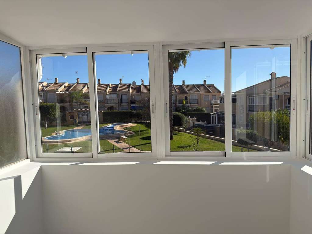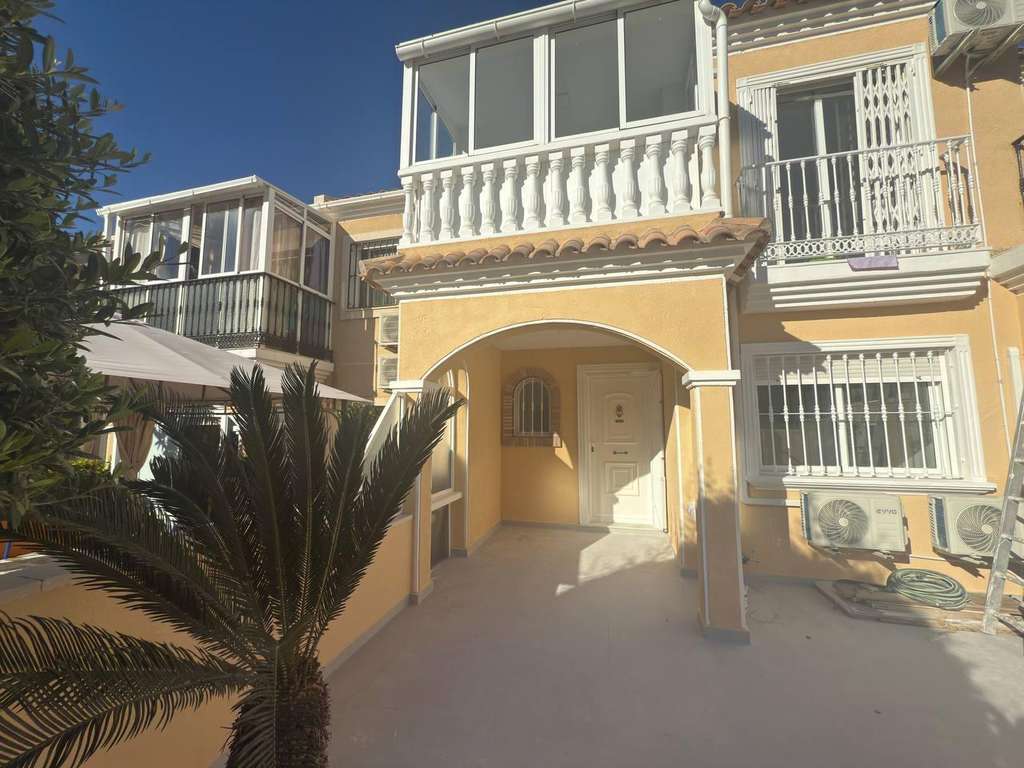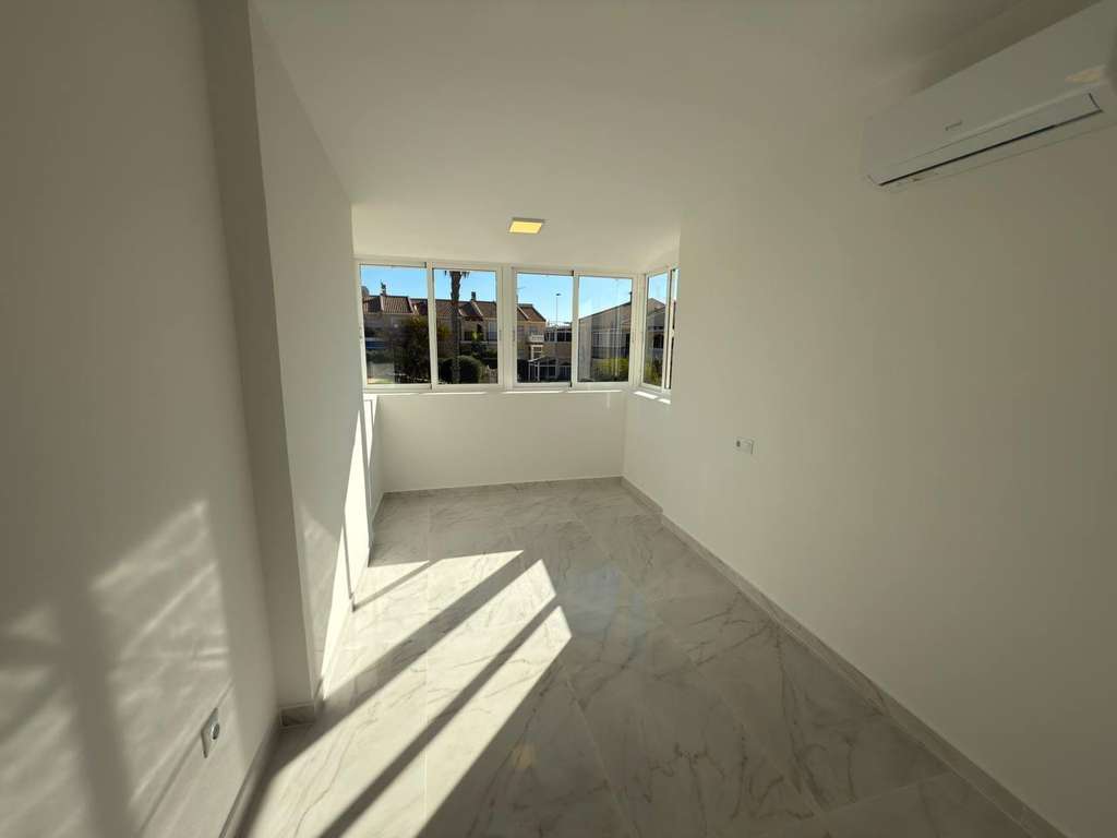 Te presentamos excelente adosado totalmente reformado con piscina comunitaria en Aguas Nuevas. Dispone 2 dormitorios dobles, 2 cuartos de baños, 1 aseo, salón comedor. La cocina equipada con nuevos electrodomésticos, una terraza de 40m2 para disfrutar de reuniones familiares, aparcar un coche si lo desea , con la piscina comunitaria y jardín delante. Esta situado en una zona con todos los servicios alrededor, y la playa a unos 2 km. Característica de reforma: -Gres porcelánico tipo marmoleado blanco en suelos, alicatados porcelánicos imitación piedra y madera -terrazas nuevas suelo porcelánico imitación piedra en gris. -instalaciones y splits nuevos incluidos frio y calor con control wifi en mobil. -Electrodomésticos nuevos (vitro, nevera, horno y micro, lavadora). -Griferías y mamparas de ducha nuevas en negro mate. -Muebles de baño nuevos, suspendidos en pared, en 2 baños y aseo. -Sanitarios nuevos porcelánicos de diseño moderno. -Climatización mediante Splits frío y calor en salón y 2 dormitorios con control por wifi,enciendelos cuando llegues al aeropuerto desde el movil y disfruta de tener la casa a tu gusto, cuando llegues. Acceso vehículos con mando para aparcar dentro o en frente de la casa. Los imagines son terminaciones similares de una propiedad reformada anterior de mismas características. *este anuncio no es vinculante, puede contener errores o variaciones. Se muestra a título informativo y no contractual*.