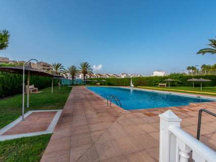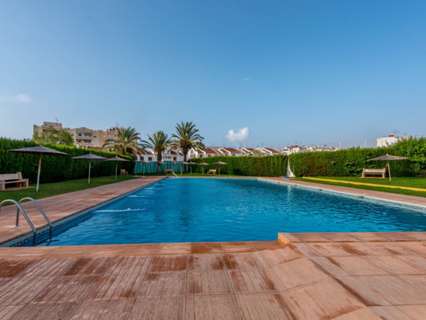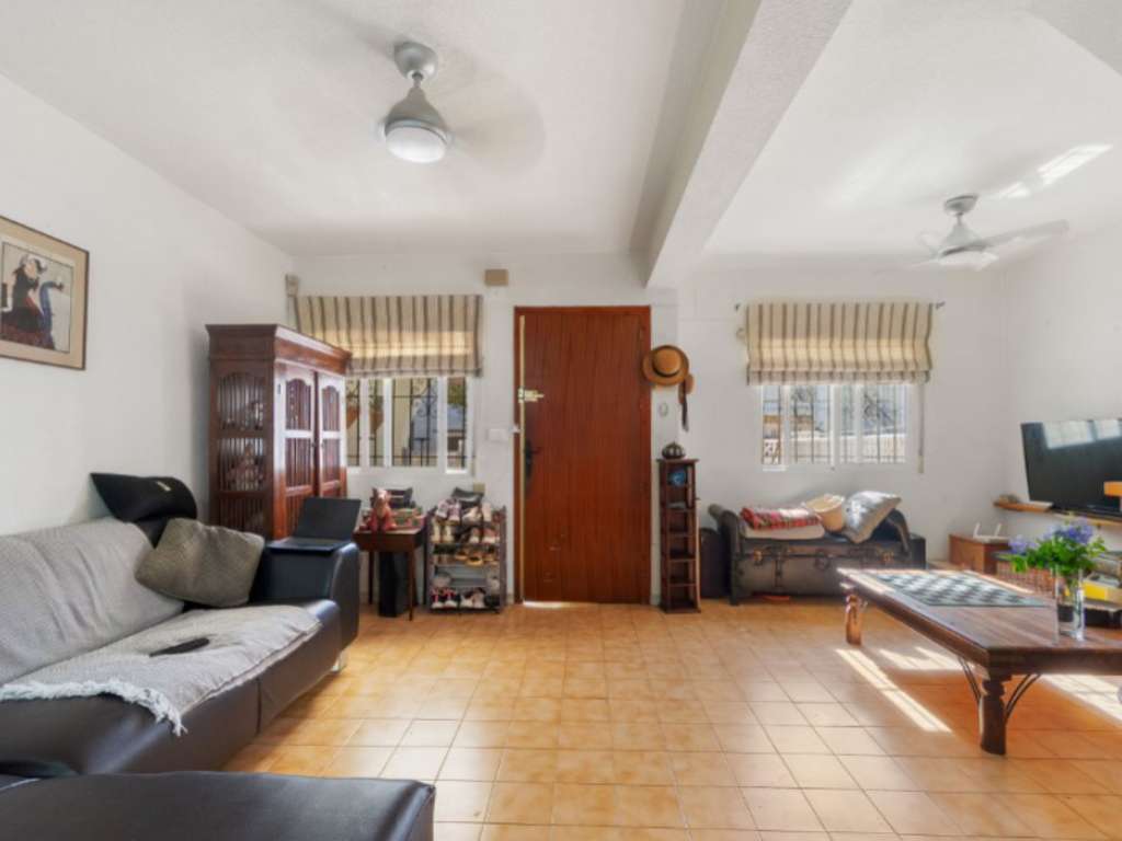Estupenda casa adosada en la popular Calas Blancas, cerca de la playa y del centro.Bienvenido a esta encantadora casa adosada en la codiciada urbanización de Calas Blancas, una zona que combina las comodidades modernas con el verdadero estilo de vida español. Aquí vive a solo unos minutos a pie de la hermosa Playa de Los Locos, mientras que tiene el animado centro de Torrevieja al alcance de la mano, perfecto para aquellos que desean paz y proximidad a todo.Un hogar con todo lo que necesitasLa propiedad ofrece un plano de planta luminoso y abierto en la planta baja, donde la sala de estar y la cocina fluyen naturalmente juntas y crean un ambiente agradable tanto para la vida cotidiana como para las reuniones sociales.En la segunda planta encontrará dos cómodos dormitorios y un baño, ideal para familias o como casa de vacaciones. En la cima, le espera un soleado solárium, donde podrá disfrutar del sol todo el día, el lugar perfecto para relajarse, hacer una barbacoa o tomar una copa de vino al atardecer.Instalaciones y ubicaciónCalas Blancas es conocida por su entorno verde, varias piscinas comunitarias, instalaciones deportivas e incluso una iglesia ortodoxa, un barrio seguro y agradable adecuado tanto para residentes como para turistas.La propiedad se vende completamente amueblada, a excepción de las pertenencias personales, por lo que puede mudarse directamente y comenzar a disfrutar de todo lo que Torrevieja tiene para ofrecer.Información prácticaIBI: 226,19 € al añoTasa de basura: 55,93 € x 2 al añoGastos de comunidad: 180 € al añoEsta casa adosada es una visita obligada para aquellos que sueñan con una casa cerca del mar, con todas las comodidades cerca.Póngase en contacto con el agente inmobiliario hoy mismo para concertar una visita, ¡y experimente por qué Calas Blancas es una de las zonas más atractivas de Torrevieja!