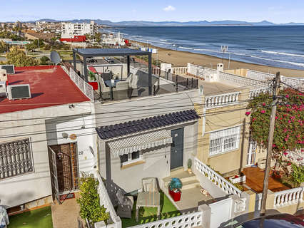 Casa adosada en venta – 3 dormitorios, 2 baños, salón acristalado, zonas exteriores y solárium – Primera línea de Playa La Mata.