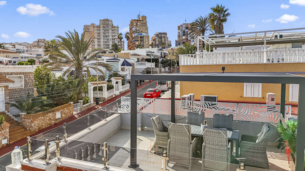 Esta casa adosada, completamente reformada entre 2023 y 2024, se encuentra a solo unos pasos de la Playa de La Mata. Ofrece 3 dormitorios, 2 baños, zonas exteriores en ambos lados de la vivienda, un salón acristalado y una fantástica terraza en la azotea.