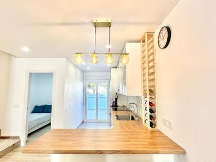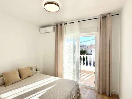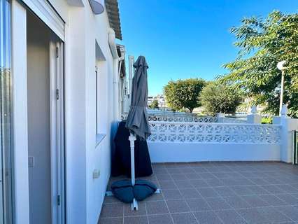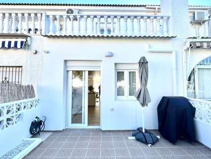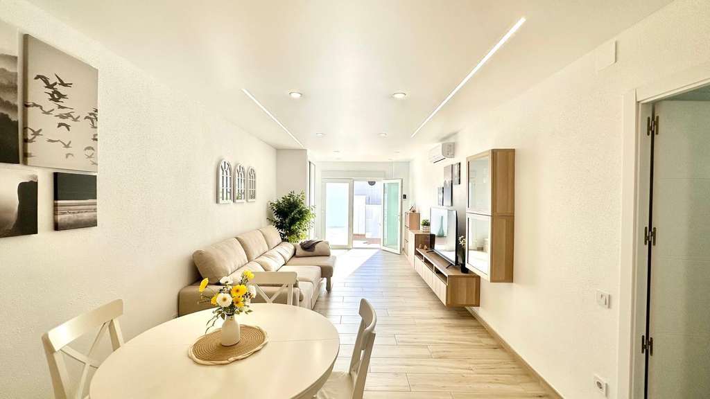 Ubicada en la Avenida París, en una zona residencial tranquila y bien comunicada, esta acogedora casa adosada se encuentra a tan solo un kilómetro y medio de la playa, combinando la cercanía al mar con la comodidad de vivir en un entorno más residencial. Es una opción ideal tanto para quienes buscan una vivienda habitual como para quienes desean una segunda residencia cerca de la costa. En la planta baja, la vivienda cuenta con un amplio y luminoso salón comedor, diseñado para ofrecer un espacio cómodo y funcional destinado al descanso y a la vida en familia. La cocina de estilo francés-americano, abierta y moderna, se integra perfectamente con la zona de día, creando una sensación de amplitud y favoreciendo la convivencia. Desde esta planta se accede a un patio trasero, un espacio exterior muy práctico para zona de lavandería, almacenamiento o para disfrutar de comidas al aire libre. Además, dispone de un dormitorio en la planta inferior y un aseo, lo que aporta comodidad adicional y resulta especialmente útil para invitados o personas con movilidad reducida. La vivienda también cuenta con un patio delantero, ideal como terraza privada, zona de descanso o pequeño jardín de bienvenida, aportando un valor añadido al espacio exterior de la propiedad. En la segunda planta se encuentran dos dormitorios dobles, amplios, luminosos y confortables, ambos con acceso directo a sus propias terrazas privadas, perfectas para disfrutar del sol, la ventilación natural y momentos de tranquilidad en el exterior. En esta misma planta se sitúa un cuarto de baño completo con plato de ducha, moderno y funcional, que da servicio a ambos dormitorios. La propiedad cuenta con una excelente orientación sur y norte, lo que garantiza luz natural a lo largo de todo el día y permite una ventilación cruzada que contribuye a mantener un ambiente fresco y agradable durante todo el año. Además, la vivienda forma parte de una urbanización con piscina comunitaria, perfecta para relajarse y disfrutar del buen clima mediterráneo sin necesidad de desplazarse. En conjunto, esta casa adosada en Avenida París ofrece una combinación ideal de espacio, comodidad, funcionalidad y zonas exteriores, en un entorno tranquilo y bien ubicado, convirtiéndose en una excelente opción para disfrutar de la vida mediterránea con todas las comodidades.