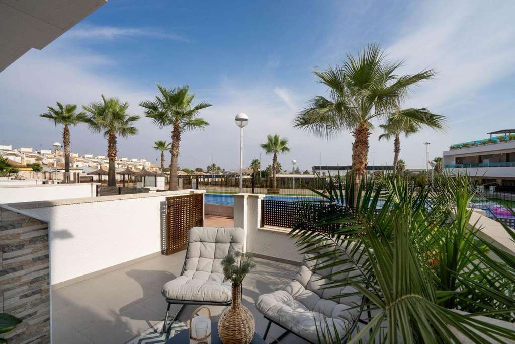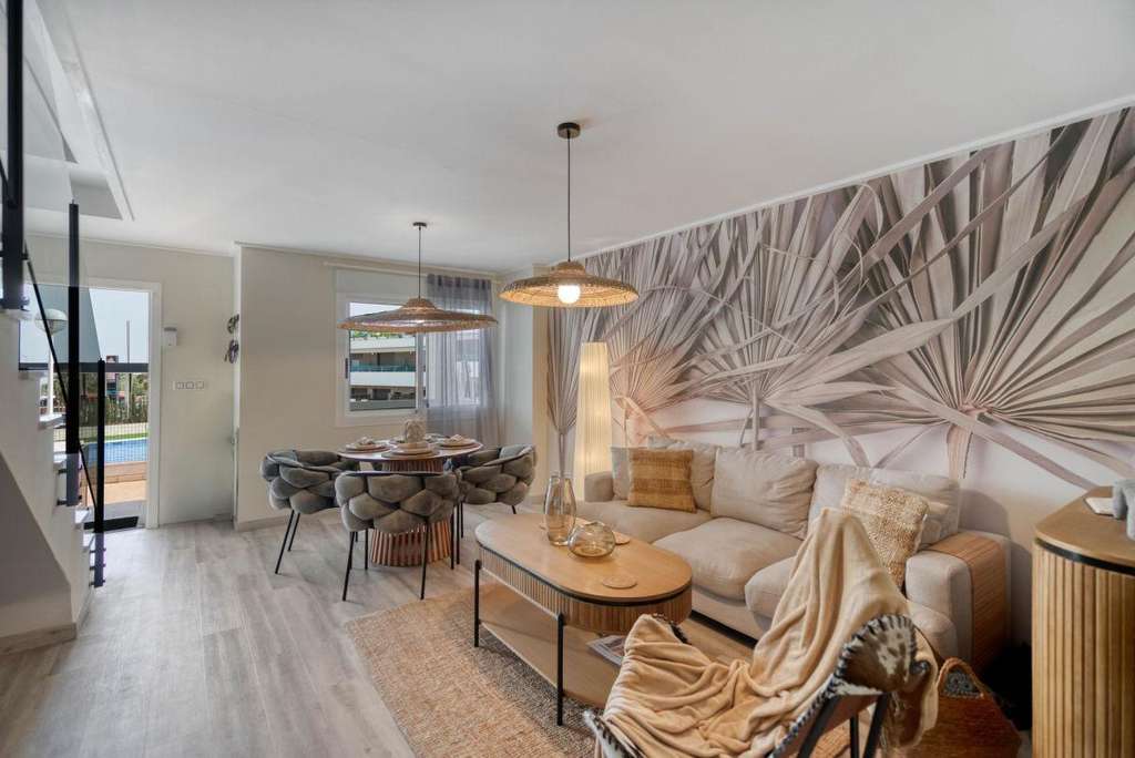 ¡Una hermosa casa nueva por el precio de un apartamento en un condominio cerrado ! Casa adosada de dos niveles, 115 m2 de construcción, 80 m2 de espacio útil, amueblada con buen gusto. En una hermosa zona residencial con vista al mar y laguna. La vivienda consta de 3 dormitorios, 2 baños, salón, cocina, patio, terrazas, amplio solárium y plaza de aparcamiento en parcela privada o en aparcamiento de urbanización. Preciosa piscina comunitaria. Casa del lado de la piscina !