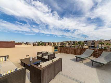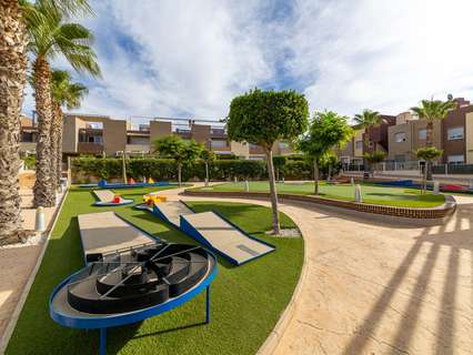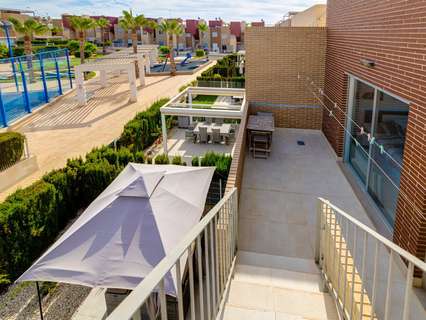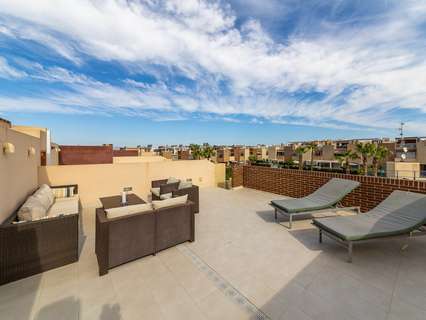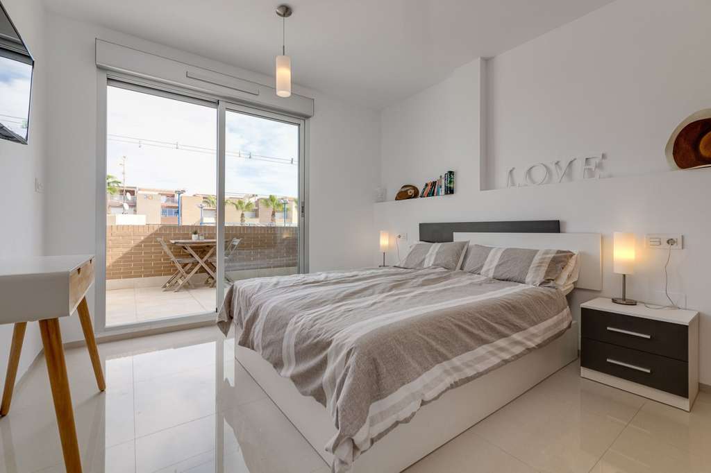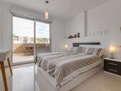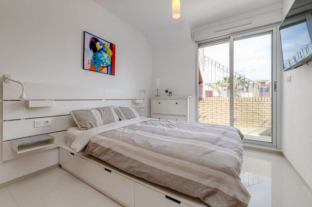Les presentamos en la zona del Sector 25, que limita con el popular barrio de Aguas Nuevas, una casa relativamente nueva. Del 2018, la vivienda esta lista para entrar a vivir. Esta preciosa casa consta en plan abierto de un comedor y la cocina. En la planta baja también hay un dormitorio y un baño. La terraza da a la zona donde esta la piscina comunitaria, pistas de padel, parque infantil y donde podra disfrutar de mucho espacio para disfrutar del sol. La planta alta consta de dos dormitorios y un baño. Uno de los dormitorios tiene acceso a un balcón donde estan las escaleras para la subida a la terraza. Desde aquí, la vista a las zonas comunes es absolutamente maravillosa. En la terraza hay una barbacoa y una ducha, con un espacio aprovechado al máximo. Toda la propiedad está amueblada y equipada con aire acondicionado por conductos. Ademas está cerca de supermercados, restaurantes, colegios, bares y también de la playa. Aunque se trata de una propiedad relativamente nueva, los propietarios la han cuidado muy bien tanto por dentro como por fuera. Gastos e IVA no incluidos en el precio.