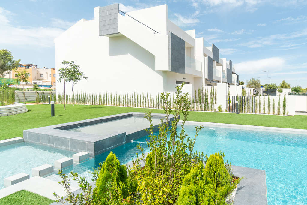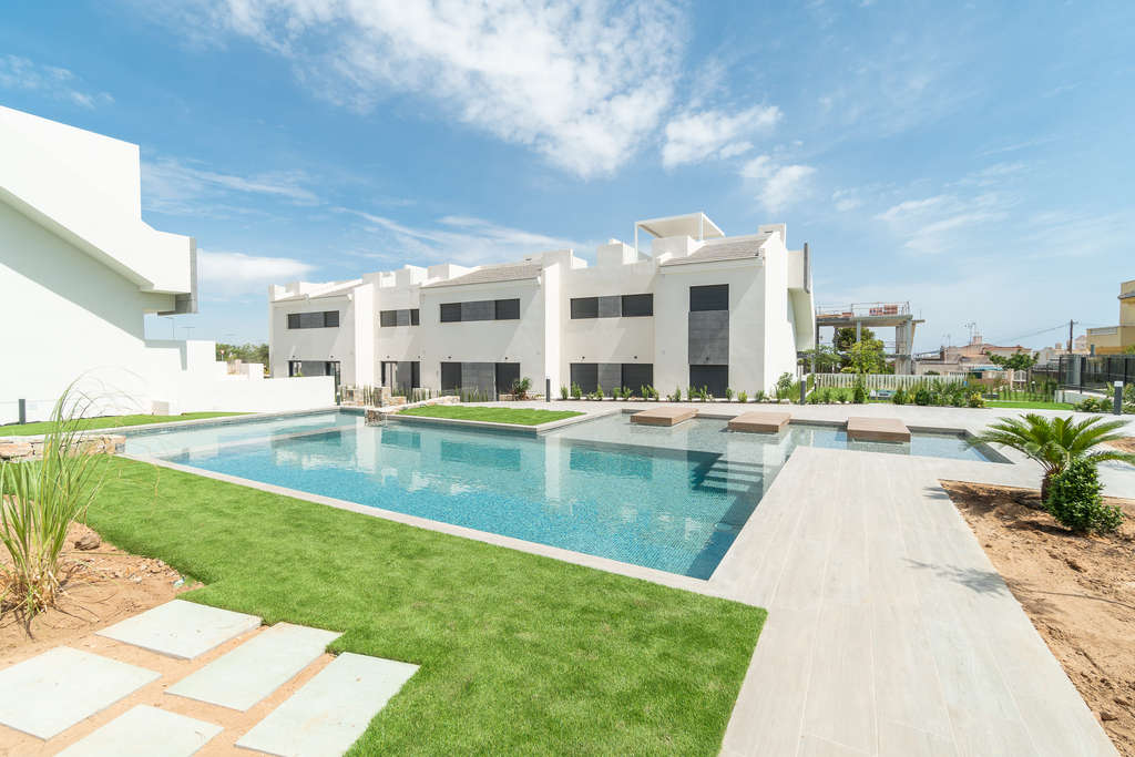 Descubre la oportunidad de vivir en un entorno idílico con las propiedades que Moraga Immo tiene para ofrecer en la encantadora localidad de Torrevieja. Este exclusivo conjunto residencial cuenta con 26 bungalows que se adaptan a tus necesidades, con opciones de 2 a 3 dormitorios y 2 baños. Diseñados con un enfoque en el confort y la funcionalidad, estos bungalows son perfectos tanto para una residencia permanente como para escapadas vacacionales. Con suelos cerámicos modernos y fáciles de mantener, estas viviendas están equipadas con aire acondicionado, asegurando un ambiente agradable durante todo el año.Imagina despertar cada mañana en tu bungalow con jardín o disfrutar del sol en tu propio solárium privado. La comunidad está diseñada para maximizar el disfrute del clima mediterráneo, ofreciendo terrazas privadas que son ideales para relajarse al aire libre. A solo 5 km del mar, este es el lugar perfecto para aquellos que desean estar cerca de la playa mientras disfrutan de la tranquilidad de un área residencial.Las instalaciones comunitarias son un verdadero lujo. Disfruta de una piscina comunitaria y un jacuzzi que te invitan a relajarte y refrescarte durante los cálidos días de verano. Las zonas ajardinadas ofrecen un espacio verde donde puedes pasear o simplemente desconectar del ajetreo diario. Además, la seguridad es una prioridad, con un videoportero que proporciona tranquilidad a todos los residentes.La ubicación es inmejorable, combinando la serenidad de una zona residencial con la proximidad a servicios y actividades de ocio. A solo 22,214 km del aeropuerto más cercano, este residencial facilita el acceso tanto para residentes como para visitantes. Los electrodomésticos incluidos, armarios empotrados y persianas eléctricas hacen que la vida diaria sea más cómoda y práctica.En resumen, estas propiedades en Torrevieja representan una magnífica oportunidad de inversión. Con todo lo que necesitas para disfrutar de un estilo de vida lujoso y relajado, no querrás dejar pasar esta oportunidad. Contacta a Moraga Immo y descubre cómo puedes hacer realidad tu sueño de vivir cerca de la costa en un entorno espectacular.
