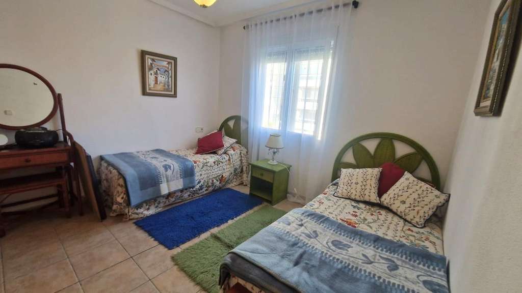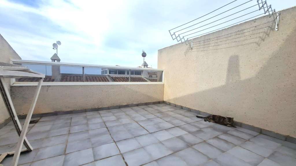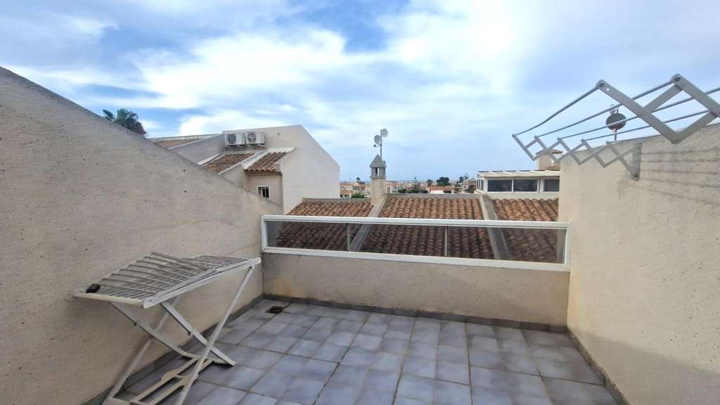 Dúplex espacioso en muy buen estado en bonito Residencial en Aguas Nuevas, a 1 km aprox de la magnifica playa de La Mata! La planta baja dispone de un gran salón comedor, una cocina independiente totalmente equipada, un dormitorio con armarios empotrados y un cuarto de baño con ducha. El salón tiene acceso a la gran terraza con jardín, barbacoa, arbustos, con vistas a la piscina. La planta primera dispone de dos dormitorios dobles con armarios empotrados y un cuarto de baño con bañera. Y se accede al solárium por escalera interior. Amueblado. Aires acondicionados. Opcional: Gran garaje cerrado (18 m2) en el sótano comunitario: 15.000€. Todo ello ubicado en Residencial vallado con piscina y jardines cerca de todos los servicios, cafeterias, restaurantes, parada de autobús, etc... Perfecto para vivir todo el año o pasar las vacaciones para disfrutar del buen clima Mediterráneo y de la playa!